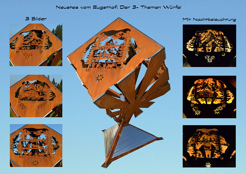 3-Themen Würfel 1m x 1m x 1m aus Eisen