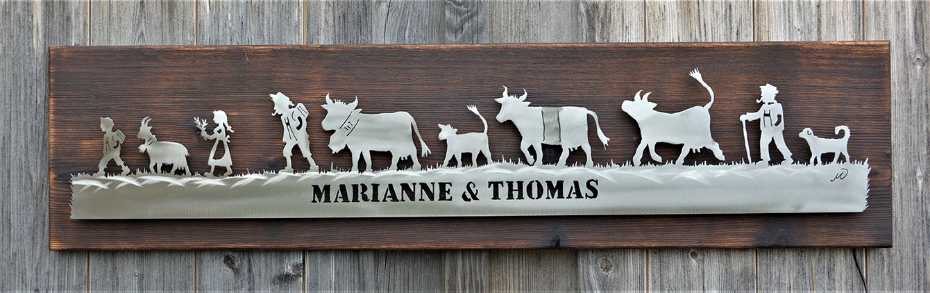 Sennenbilder aus Edelstahl können wir nach Ihrem Wunsch anfertigen.