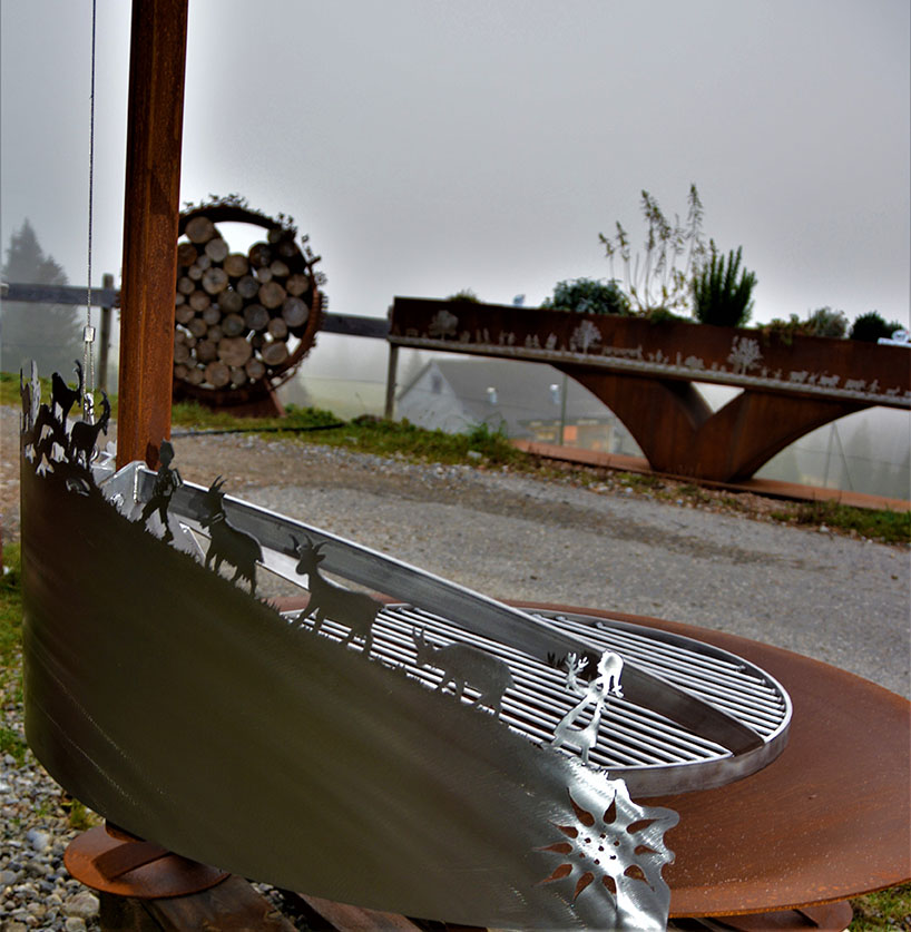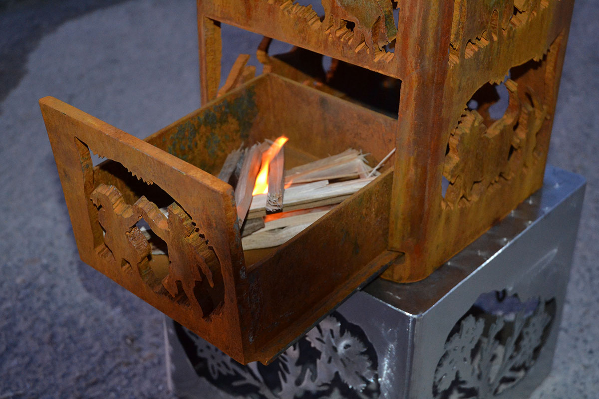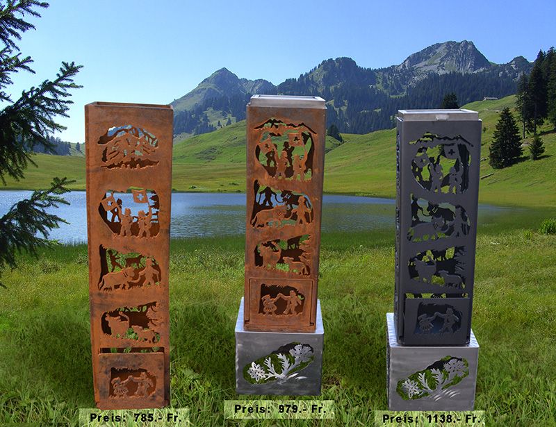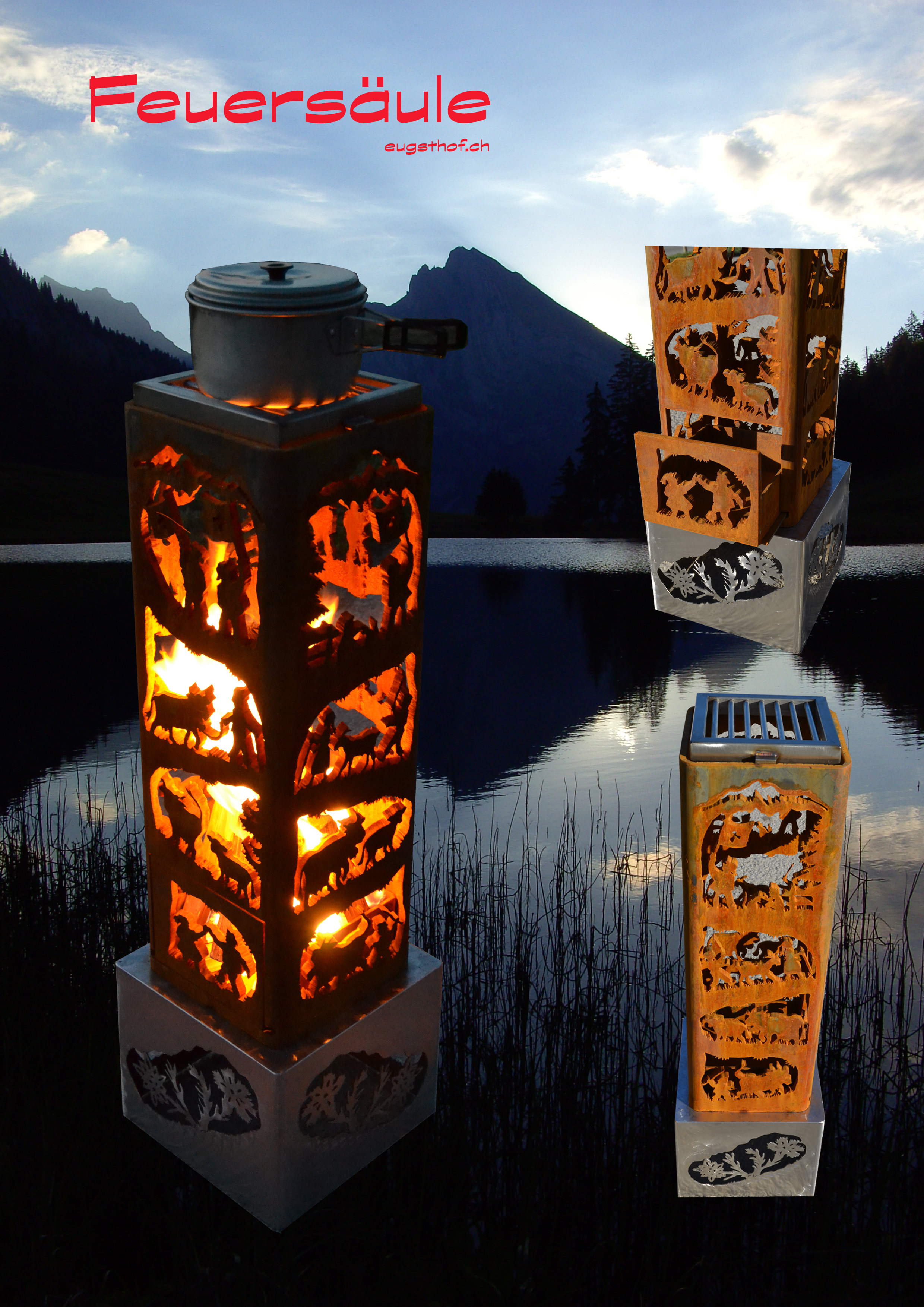 Feuersäule Alpaufzug mit Edelstahlsockel Art. Nr. 200.02