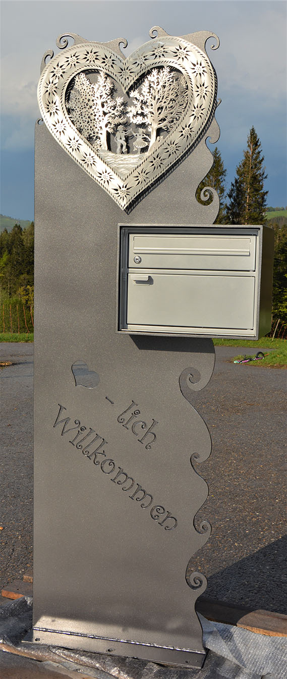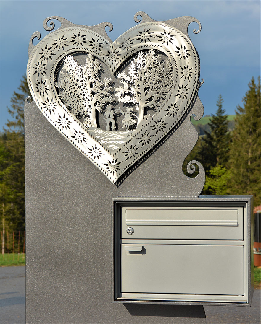 Briefkasten Spezial aus 8mm Stahl. Sujet Herz 4-Jahreszeiten Edelstahl, lackiert, mit integriertem Briefkasten
