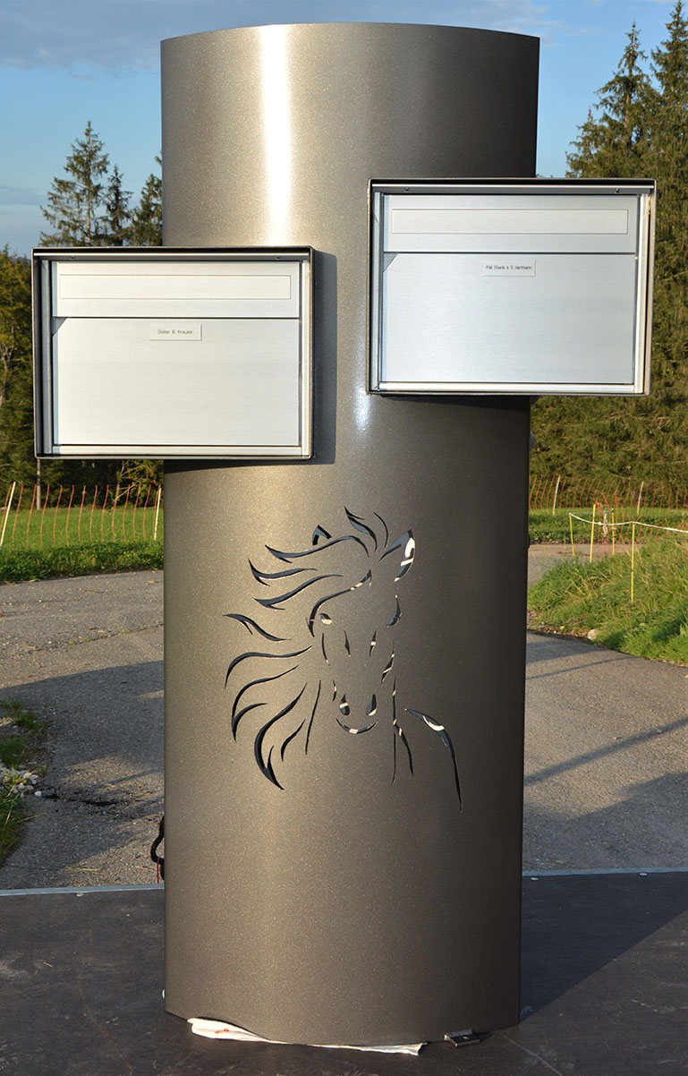 2-facher Briefkasten Linsenform mit Pferdekopf