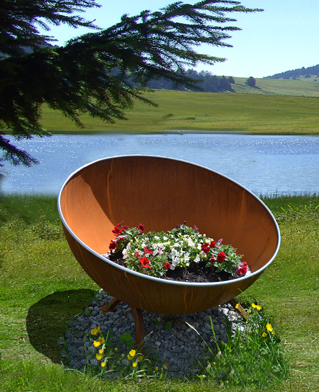 mit rostfreiem Edelstahl-Rand und Sockel