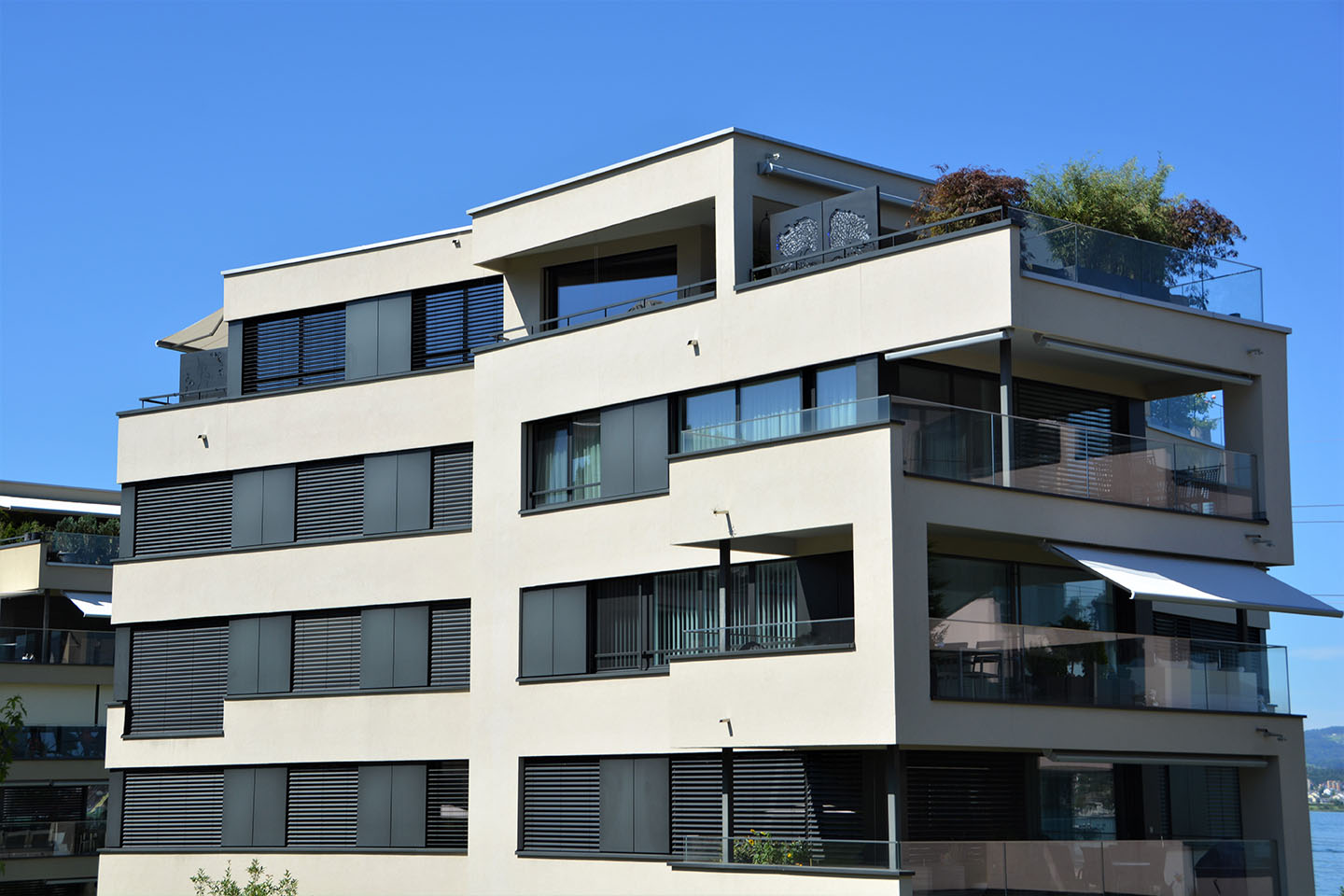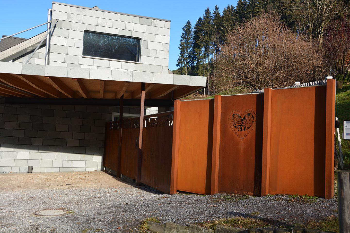 10 Meter lange Sichtschutzwand an einem Stück montiert. Mit 3 verschiedenen Sujets dekoriert. Inklusive integriertem Briefkasten.