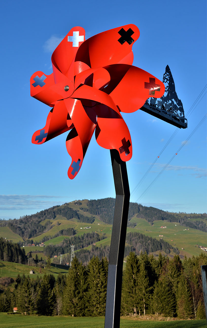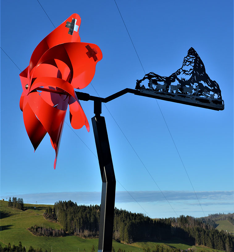 Aussenwindrad mit Alpaufzug und Sockel aus rostfreiem Edelstahl